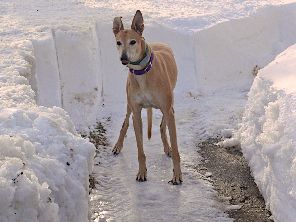 Meanwhile, up at Leona’s family farm (some three miles north of us) the snow in the front yard |